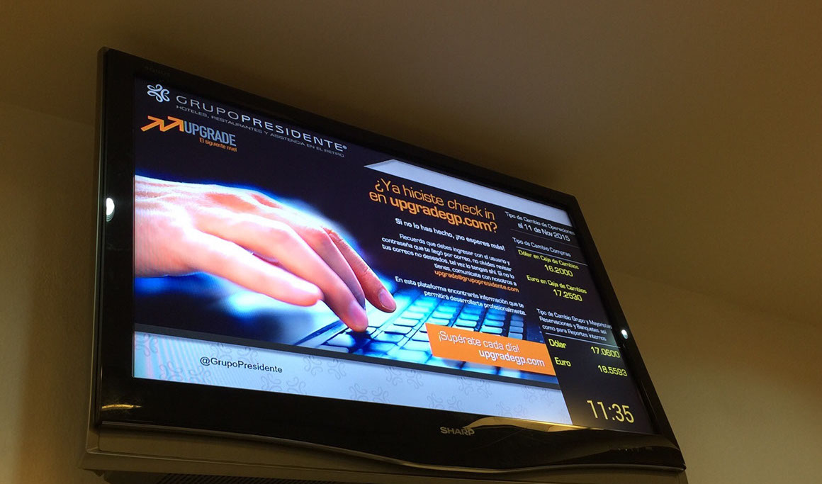 programación, soporte, monitores, hardware, software, totems, monitores, muebles, oficinas, edificios, organización hotelera, diseño de software, publicidad, pantallas interactivas, concierge, recursos humanos, digital signature, pantallas de eventos, banquetes, pantallas de salones, concierge electronico, sistema banquetes, sistema pantallas, canal interno, canal interno tv, hoteles, señalización hotelera